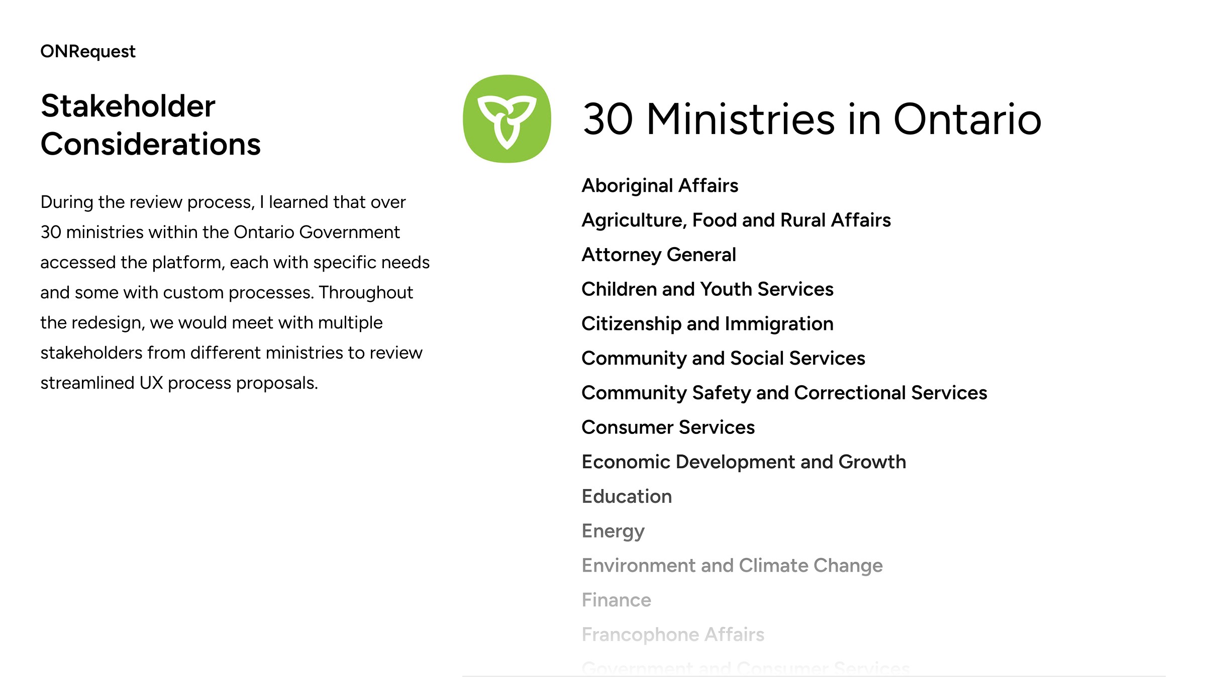In 2017, I was contacted directly by my soon-to-be manager to join a small, dedicated team of developers and researchers to rebuild the service portal from the ground up. This involved working and consulting with multiple ministries and researching several popular marketplaces for inspiration.