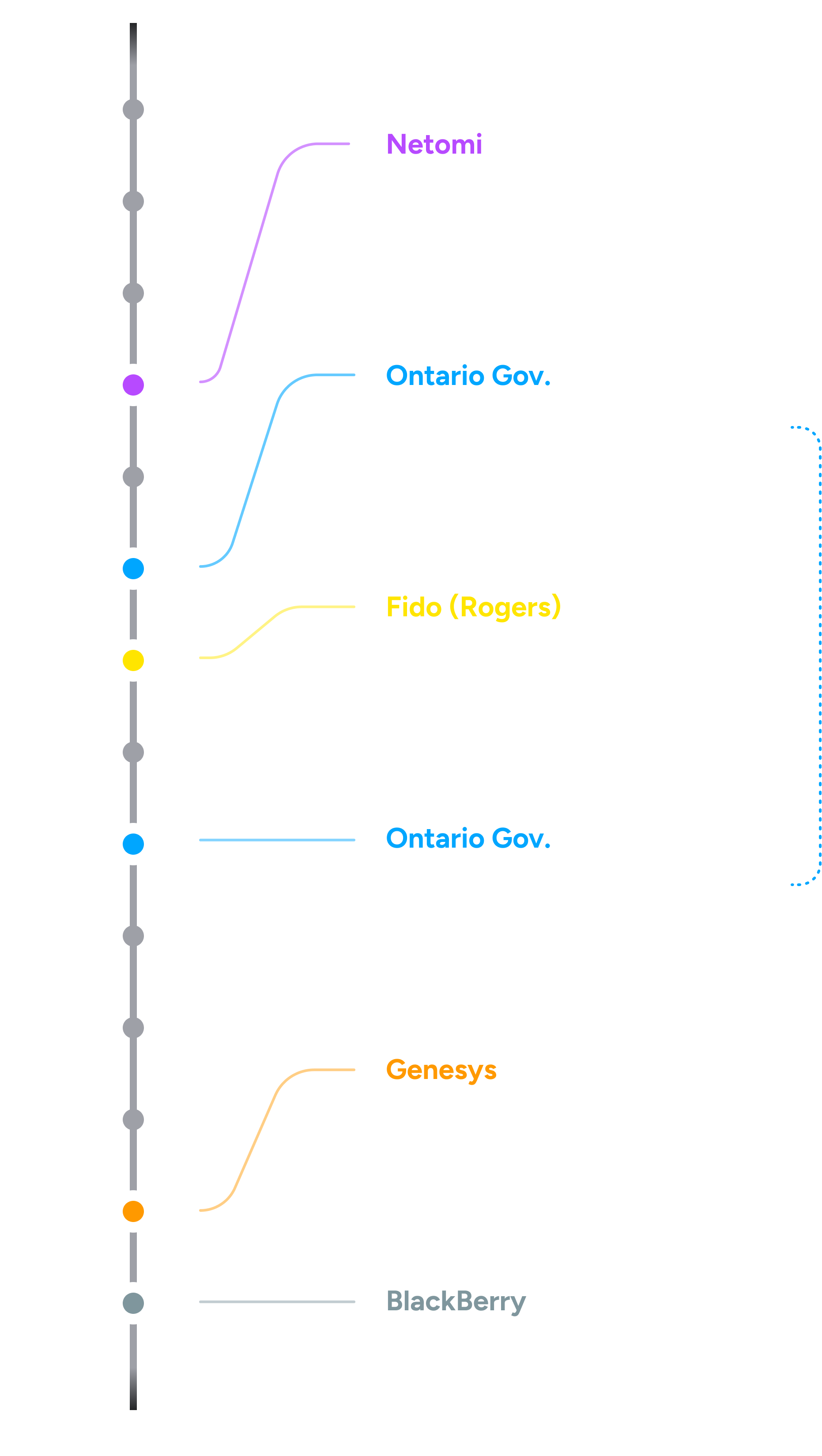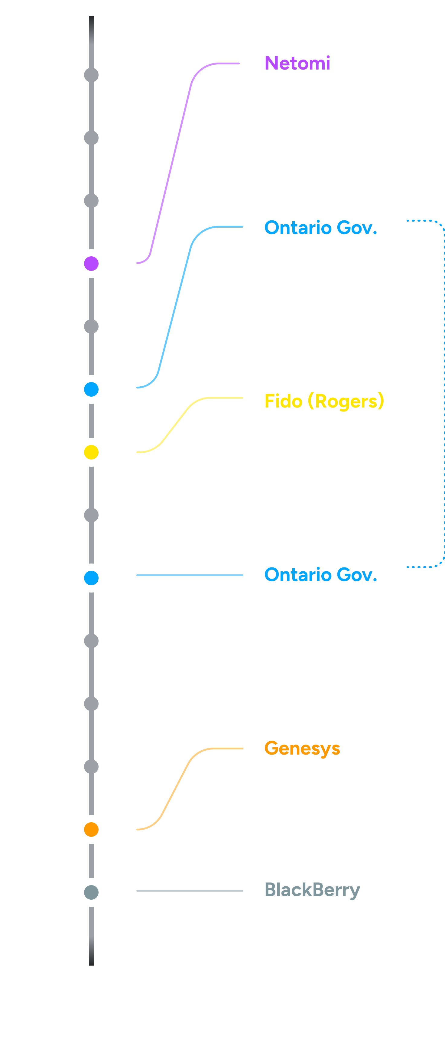 Back in 2012, my user experience journey began at BlackBerry, where I started building core UX skills in mobile OS products. My UX expertise really ramped up at Genesys, working on omni-channel enterprise applications and complex user journeys. I then joined Rogers, focusing on large-scale redesigns and platform consolidations.